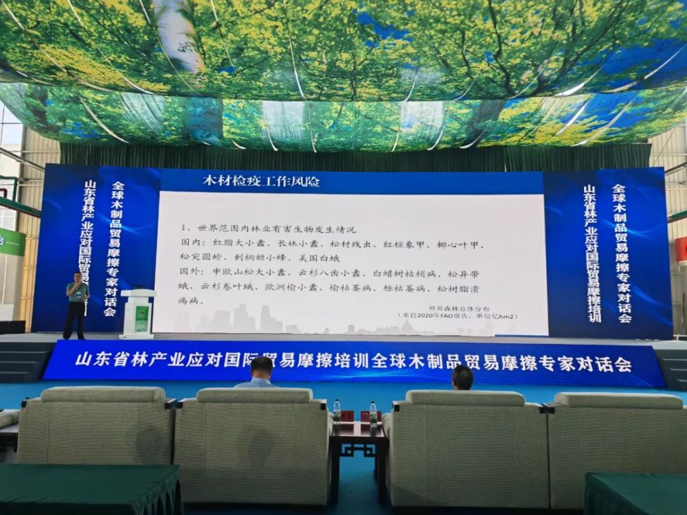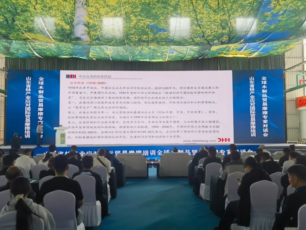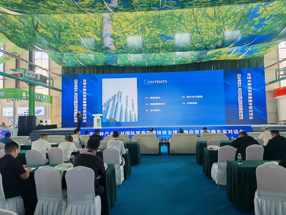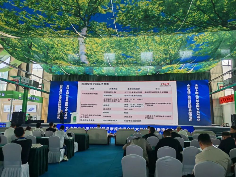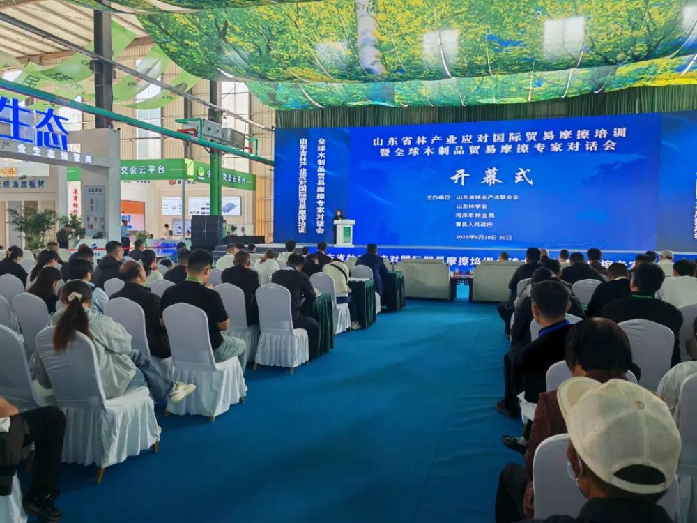 2025年9月20日,作为第二十届中国林产品交易会的重要配套活动,第三届“山东省林产业应对国际贸易摩擦培训暨全球木制品贸易摩擦专家对话会”在“中国木艺之都”曹县庄寨镇木材产业园中国林产品交易中心成功举办。会议由山东省林业产业联合会与曹县林业发展中心联合承办,汇聚政府机构、法律专家、海关代表、科研人员及全省林业企业代表共计200余人,共同探讨国际贸易摩擦应对策略,为山东林业产业高质量发展注入新动能。