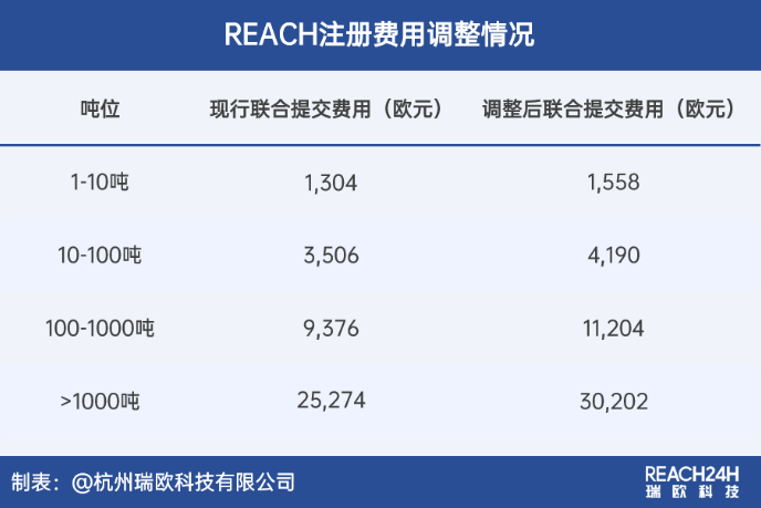 基于2021-2023年的累计通胀率,REACH注册费用将上调19.5%,但中小企业(SMEs)的费用维持不变。主要调整如下:
